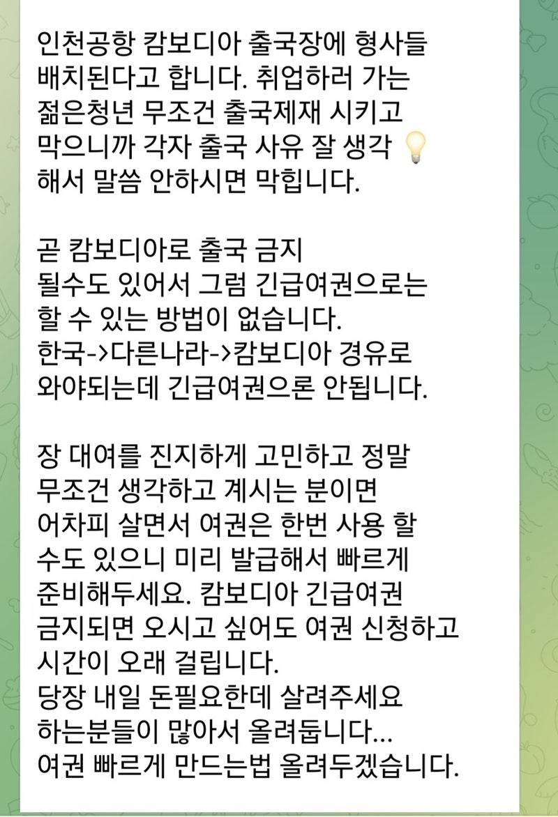 - '장집' 텔레그램 등 통해 캄보디아행 인력 모집