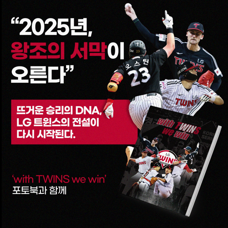 일간스포츠 기자들이 2025시즌 현장을 누비며 열심히 취재한 내용과 인터뷰, 포토 등을 실었다. 주장 박해민을 비롯해, 최고참 김진성, 복덩이 오스틴 딘, '외국인 듀오' 요니 치리노스-톨허스트, 신인 김영우 등 주축 선수들의 한국시리즈를 앞둔 특별한 각오도 포함됐다. 또 이윤승 응원단장과 이주은 치어리더 등 선수단을 위해 뛰는 LG 구성원의 특별 인터뷰도 실려 팬들의 소장 욕구를 불러일으키고 있다.