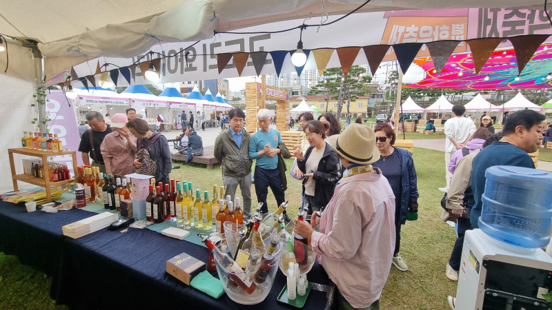 영천강변공원에서는 제13회 와인페스타와 별빛한우 명품구이축제가 동시에 열렸다. 지역 10개 와이너리가 선보인 50여 종의 와인은 재즈·팝 공연과 어우러지며 도심을 낭만으로 물들였다. 명품 한우를 직접 구워 먹을 수 있는 야외 한우식당에는 개장 첫날부터 긴 줄이 늘어섰다. 한우불고기버거, 돼지육포, 요거트 등 축산물 시식 부스도 인파가 몰렸다.