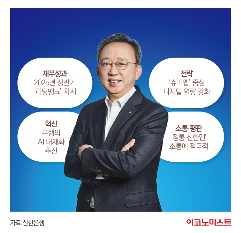 정 행장은 1990년 신한은행에 입행해 기업금융·리테일·디지털 부문을 두루 거친 ‘정통 신한맨’이다. 30년 넘게 한 조직에서 쌓은 경험을 바탕으로 형성된 리더십은 신한은행의 안정적 조직문화와 지속 성장의 기반으로 평가된다.
