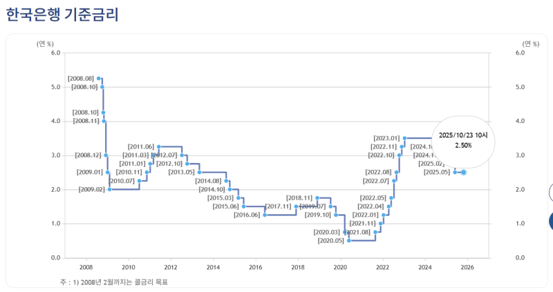 - 7·8월 이어 10월도 기준금리 2.5%로 동결