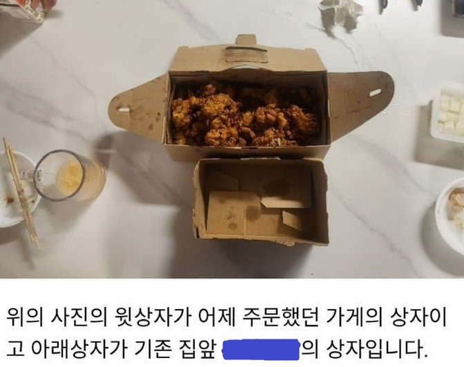 같은 메뉴를 시켰는데 다른 지점에서 온 치킨 상자가 그 동안 동네 지점에서 받은 치킨 상자보다 훨씬 컸던 것이다.