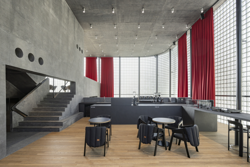 이 구조 위에는 ‘빛’과 ‘소리’가 더해져 감성적 깊이를 완성한다. 눈에 보이지 않지만 공간의 분위기와 감정을 결정짓는 본질적인 요소로 유리 블록과 콘크리트를 통해 구현됐다. 서로 다른 재료가 빛을 받아들이는 방식이 다르듯 공간 안에서는 빛과 그림자가 교차하며 리듬을 만든다. 또 높은 층고를 따라 울려 퍼지는 소리는 공간 전체에 감각적인 밀도를 더한다.