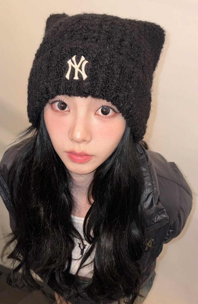 귀 모양처럼 볼록한 비니 실루엣과 커다란 NY 로고가 포인트로, 마치 ‘장화신은 고양이’의 현실판을 연상시킨다.