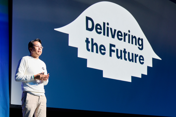 김 대표는 이날 오프닝 키노트에서 “Delivering the Future는 단순히 ‘미래를 배달한다’는 뜻이 아니라 우리가 만들어가는 기술이 곧 미래를 현실로 전달하는 과정이라는 뜻”이라며 “배민이 세상에 전하는 것은 음식을 넘어 이것을 가능하게 만드는 수많은 기술과 시스템 그리고 그 속에 담긴 사람들의 시간·마음·연결의 가치”라고 말했다.