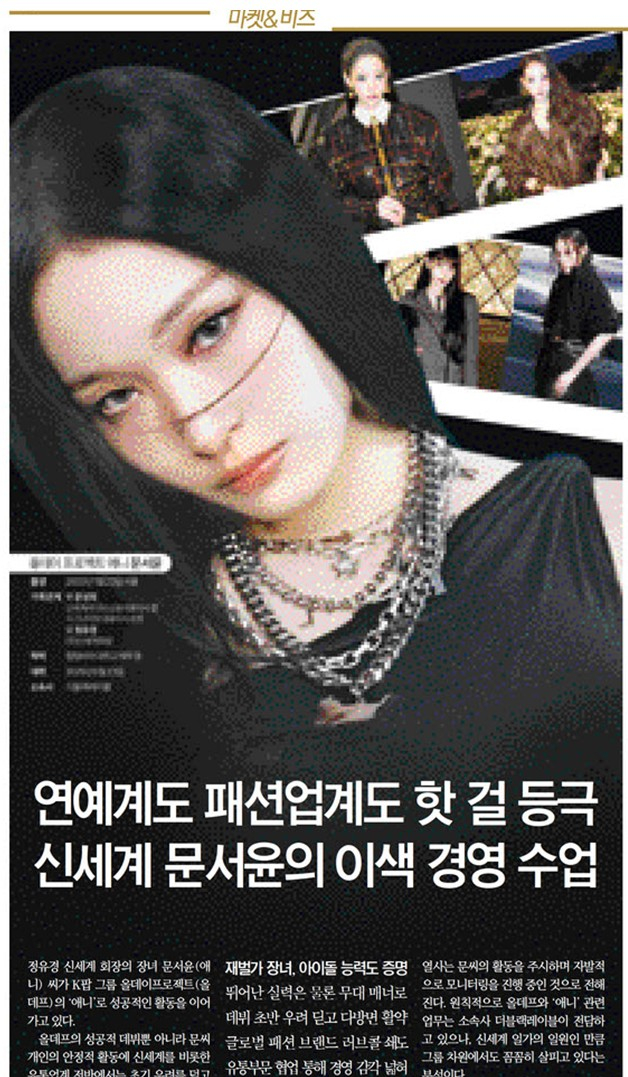 올데프의 성공적 데뷔뿐 아니라 문씨 개인의 안정적 활동에 신세계를 비롯한 유통업계 전반에서는 초기 우려를 덜고 안도하는 분위기다. 예상과 달리 문씨가 성숙한 태도로 안정감 있는 연예계 생활을 보여주고 있어서다. 오히려 문씨가 올데프 멤버로 전 세계를 누비며 글로벌 브랜드 앰배서더로 활약하는 경험이, 훗날 후계자 수업에도 긍정적인 영향을 미칠 것이란 분석이 나온다.