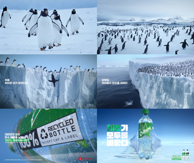 31일 롯데칠성음료에 따르면 회사는 100% 재생 MR-PET 도입을 알리고 ‘최초가 모두를 바꾼다’라는 제품 콘셉트를 소비자에게 전달하기 위해 신규 광고 1탄 철새 편에 이어 이번 광고를 제작했다.
