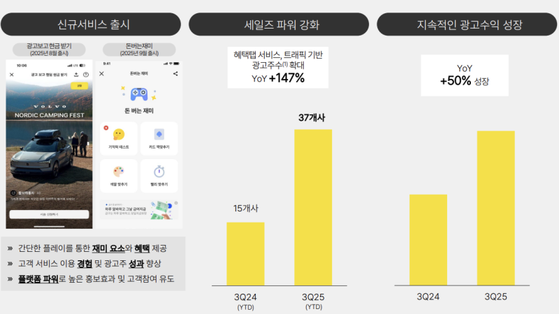 고객 혜택 강화를 위한 앱테크 서비스부터 PLCC, 모바일신분증 등 고객이 필요로 하는 새로운 금융 및 생활 서비스를 3분기에도 꾸준히 선보인 것이 고객 활동성 강화에 크게 기여했다.