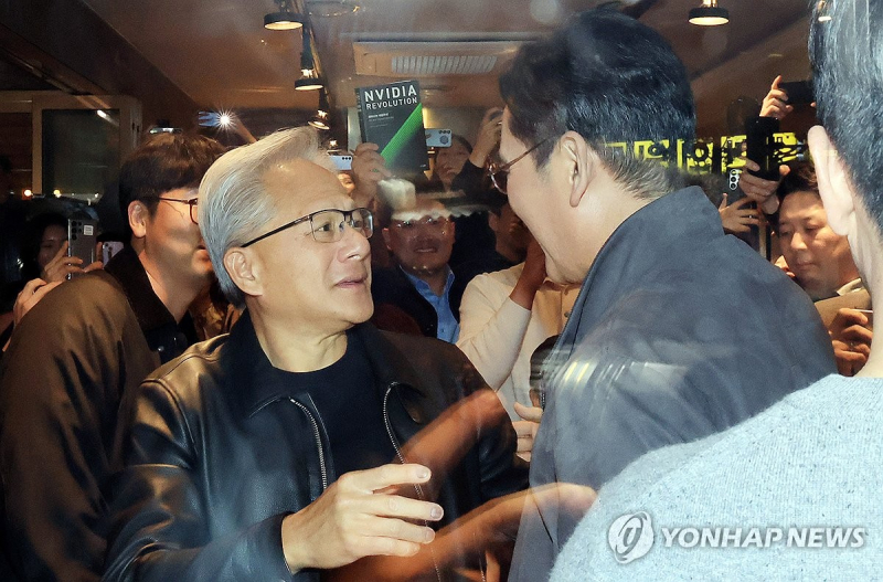 젠슨 황 엔비디아 최고경영자(CEO)가 10월 30일 오후 서울 강남구 삼성역 인근 깐부치킨 매장에서 이재용 삼성그룹 회장과 인사를 하고 있다. [사진 연합뉴스] 황 CEO는 지난달 30일 서울 강남구 삼성동의 한 깐부치킨 매장에서 이 회장, 정 회장과 비공식 회동을 가졌습니다.