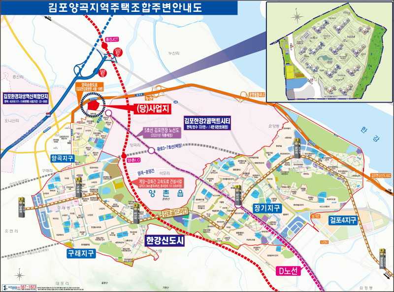 김포양곡지구는 김포시가 추진 중인 핵심 성장축 ‘김포 콤팩트시티’ 인근 지역으로, 면적 약 731만㎡, 인구계획 4만6천호 규모의 대규모 도시개발 구상지에 인접해있다. 특히 서울지하철 5호선 김포연장선, 계양~강화 고속도로, 김포환경재생혁신복합단지 조성 등 굵직한 개발사업이 인접 지역에서 진행 중이어서 향후 교통 및 생활 인프라 측면에서 큰 수혜가 기대된다.