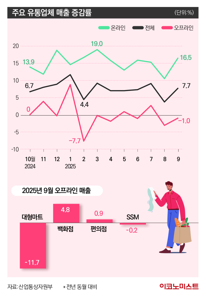- 9월 대형마트·SSM 매출 전년 대비 11.7%·0.2% 감소
