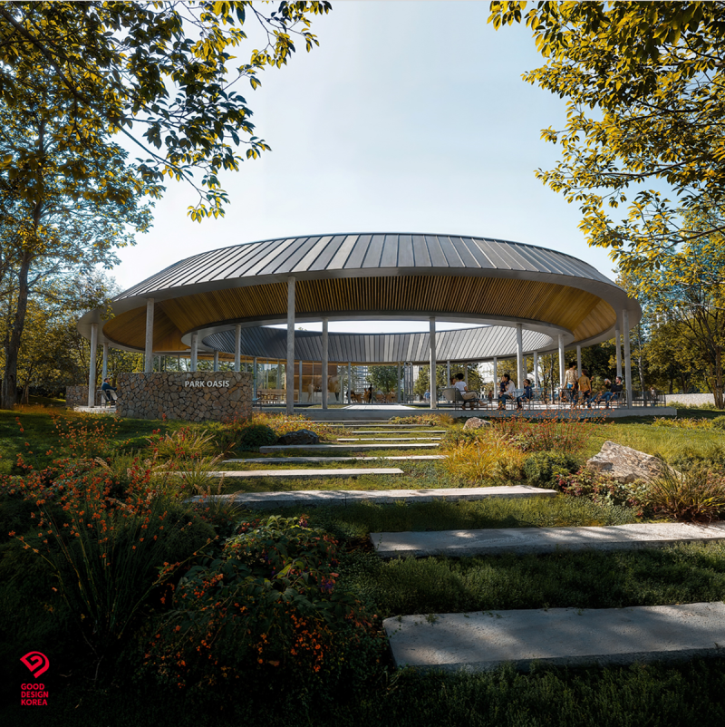 파크오아시스(야외음악당)는 도심 속의 정서적 안식처를 주제로, 밀도 높은 도시 환경 속에서도 잠시 멈춰 숨을 고를 수 있는 여백의 공간으로 기획됐다. 단순한 공연 시설을 넘어, 개인과 공동체가 자연스럽게 교류하고 감각이 깨어나는 감성적 커뮤니티 공간으로 기능한다.
