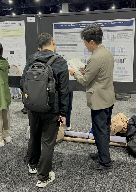 특히, 그라운딩 매트 21일 적용군에서는 REM·NREM 수면이 고르게 늘어나고 총 수면 시간이 약 35% 이상 증가하며 전반적인 수면 효율이 크게 향상된 것으로 나타난 것에 큰 관심을 보이며 앞으로의 연구 협력 가능성을 넓혀 가기도 했다.