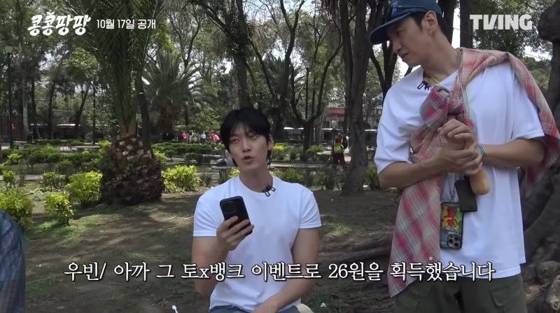 콩콩팡팡은 ‘콩콩팥팥’이라는 식품업체가 있다는 세계관 속 직원들이 해외문화탐방을 떠나는 내용이다. 회사 대표는 이광수, 감사는 김우빈, 직원은 도경수 등으로 역할이 구분돼 있다. 특히 이번 해외탐방에서 자금 관리는 감사인 김우빈이 도맡았다.