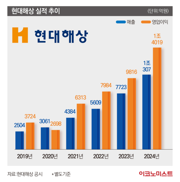 현대해상은 2019년 이철영 단독대표 체제 이후 지난 5년간 조용일·이성재 각자대표체제를 유지해왔다. 두 대표는 영업부문과 경영지원부문으로 나뉘어 각각의 분야를 관리해 왔고 이 기간 현대해상의 당기순이익은 2000억원대에서 지난해 1조원대를 돌파하는 등 호실적 행진을 보였다. 각자대표체제가 사실상 큰 성공을 거둔 셈이다.