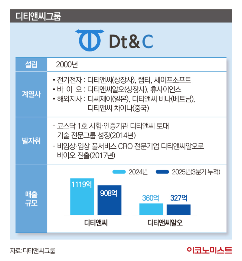 결국 2017년 디티앤씨알오의 설립을 통한 바이오 진출은 2022년 코스닥 시장의 상장으로 연결됐다. 디티앤씨알오는 비임상·임상을 아우르는 풀서비스 CRO 전문기업으로 성장했다. 의약품·화학물질·건강기능식품·화장품 및 의료기기 등의 인허가에 필요한 비임상(GLP) 독성·약동학(PK)·효능 시험·분석·생동시험·임상시험·인허가 컨설팅까지 원스톱 통합 서비스를 제공하고 있다.