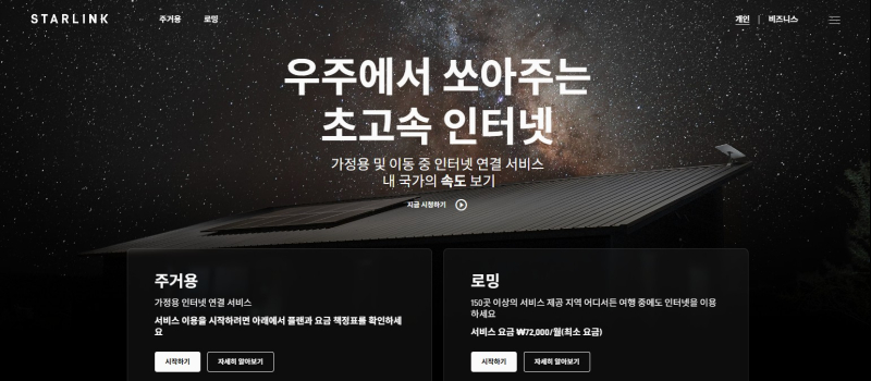 스타링크는 지난 12월 4일부터 일반·기업 고객을 상대로 가입을 받기 시작했다. 기업과 소비자 간 거래(B2C)인 주거용 요금제는 월 8만7000원, 라이트 요금제는 6만4000원 수준으로 책정됐다. 장비 가격은 50만원대 중반이다. 다운로드 속도는 130Mbps 안팎이다. 국내 5G·LTE망보다는 느리다.