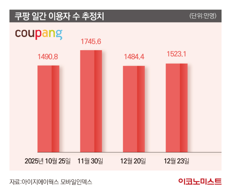 학계에서는 쿠팡이 국회 및 정부와 강대강 구도를 가져가는 배경으로 충성 고객을 꼽는다. 쿠팡은 국내 이커머스 시장에서 독점적 지위를 갖고 있다. 개인정보 유출 사태 이후에도 고객 이탈 등의 영향은 크지 않은 것으로 보인다. 아이지에이웍스 모바일인덱스에 따르면 쿠팡의 일간이용자 수(DAU·추정치)는 2025년 12월 23일 기준 1523만812명이다. 한때 1480만명대로 떨어졌던 DAU는 다시 1500만명 수준을 유지하고 있다.