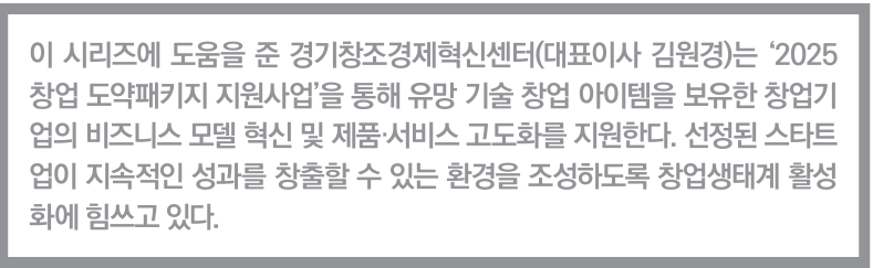 경기창조경제혁신센터의 ‘창업도약패키지 지원사업’은 ‘데스밸리’(죽음의 계곡)를 겪는 3~7년 사이의 스타트업을 지원한다. 이 사업에 선정된 스타트업 창업가의 생생한 이야기는 후배 창업가들의 성장에 도움을 줄 것이다. <편집자주>