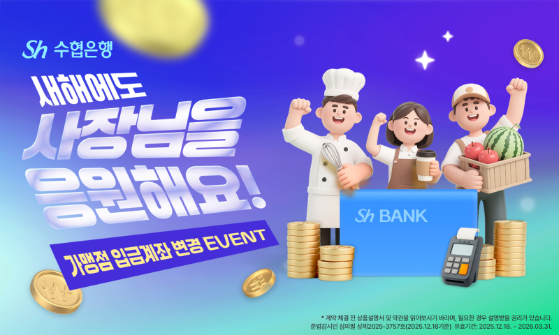 “결제계좌 바꾸면 최대 5만원” Sh수협은행, 사장님 응원 이벤트