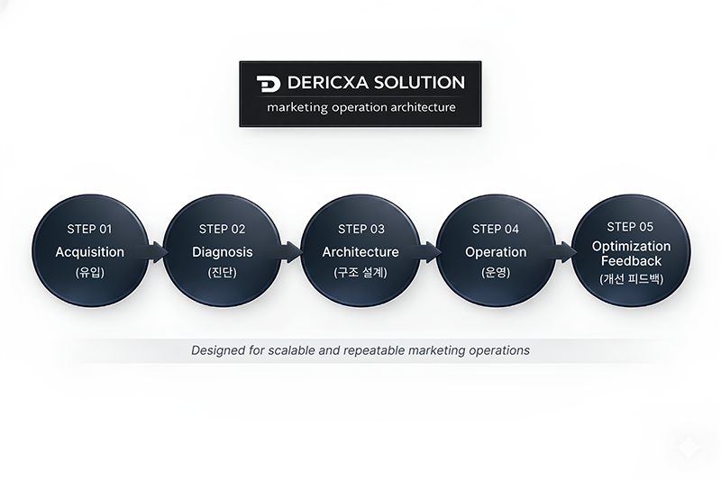 데릭사솔루션 측에 따르면 기업 마케팅 환경이 복잡해짐에 따라 광고 집행 이후 전환 효율의 체계적 관리를 목표로 이번 솔루션을 선보인다. 유입(Acquisition)-진단(Diagnosis)-구조 설계(Architecture)-운영(Operation)-개선 피드백(Optimization Feedback)으로 이어지는 운영 구조를 기반으로 솔루션을 구성했다.