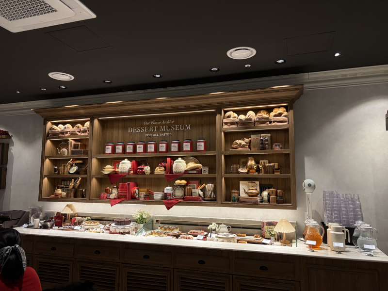 ‘하우스 오브 애슐리’의 ‘디저트 뮤지엄’에서는 프리미엄 디저트 10종을 무제한으로 맛볼 수 있다. [사진 강예슬 기자] 이랜드이츠는 하우스 오브 애슐리를 전시·다이닝·디저트를 결합한 복합 외식 공간으로 만들었다. 본 매장 오픈 전 고객과의 소통을 위해 마련한 하우스 오브 애슐리의 핵심은 프리미엄 디저트 뷔페, 셰프 협업 메뉴와 함께 애슐리퀸즈가 최초로 공개하는 브랜드 세계관과 전시품이다.