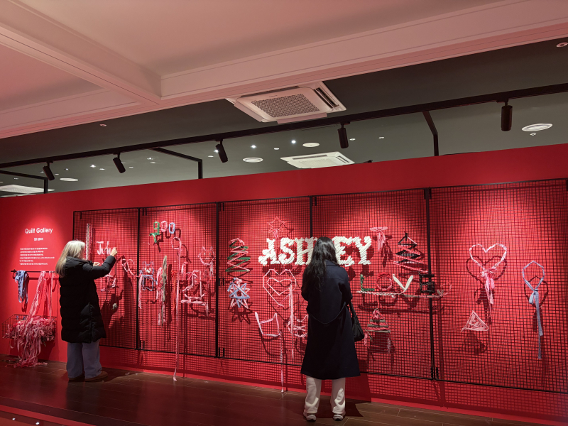 ‘하우스 오브 애슐리’ 전시 공간에서 방문객들이 퀼팅 체험을 하고 있다. [사진 강예슬 기자] ‘애슐리퀸즈’ 첫 팝업…고객층 확장·소통 강화 목적