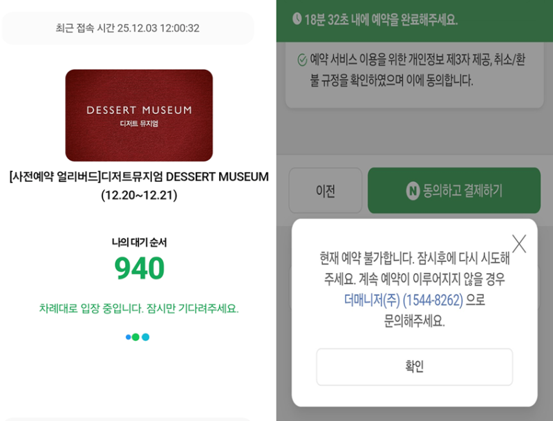 ‘디저트 뮤지엄’의 얼리버드 예약은 개시 1분 만에 매진됐다. [네이버 예약 캡처] 예약 마감 1분 컷…‘가성비’가 인기 요인
