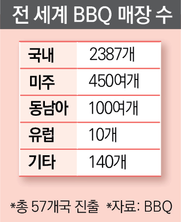 BBQ의 해외 사업은 현재 가파른 성장세를 보이고 있다. 2024년 정보공개서 기준 국내 매장 2387개를 운영 중인 BBQ는 해외에서도 700여 개의 매장을 확보하며 영토를 넓히고 있다.
