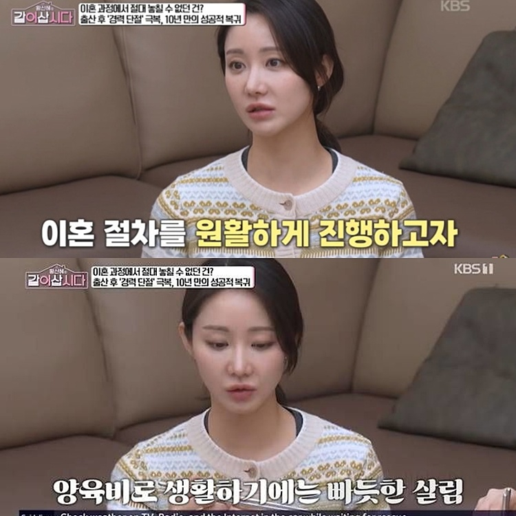 그러나 그 선택의 대가는 녹록지 않았다. 그는 “재산 분할을 하지 않아 이혼 직후엔 돈이 한 푼도 없었다”며 “양육비를 쓰고 나면 여유가 전혀 없었다”고 털어놨다.