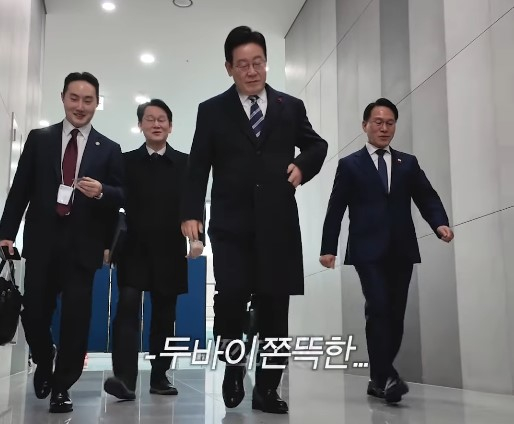 영상에 따르면 지난 23일 울산을 방문한 이 대통령이 타운홀 미팅을 마치고 이동하는 길 참모진들과 '두쫀쿠'에 대한 대화를 나눴다.