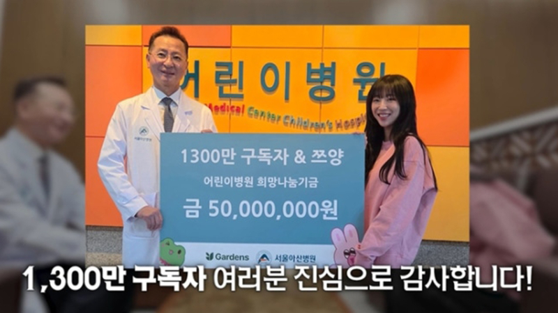 쯔양은 이후 서울아산병원 어린이병원을 찾아 기부금을 전달하고 감사패를 받았다. 그는 “아픈 아이들을 위해 의미 있게 쓰이길 바란다”고 말했다.