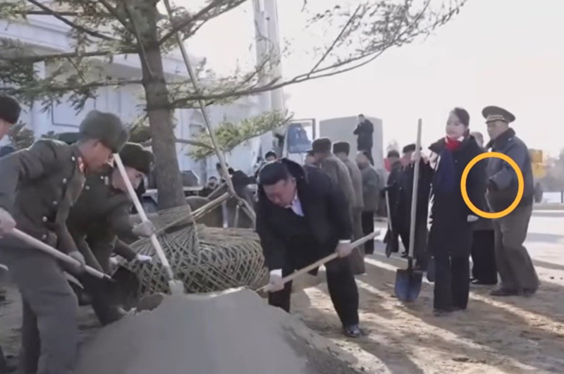 영상에 따르면 김 위원장이 삽을 들고 나무를 심는 동안 김주애는 뒤편에 서 있었고, 이때 노광철 국방상이 다가가 김주애의 등을 두 차례 가볍게 두드리며 앞으로 나서라는 듯한 제스처를 취했다. 뒤편에서 이를 지켜보던 김 위원장의 부인 리설주 여사는 김주애 쪽으로 다가갔고, 이후 전환된 화면에서는 김주애가 김 위원장 앞으로 이동해 식수 작업에 참여하는 모습이 포착됐다.
