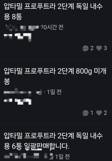 당근 커뮤니티에는 "압타밀 독일내수용 파는 사람들, 왜 파느냐. 쓰레기통에 버리라"는 비판도 올라왔다.