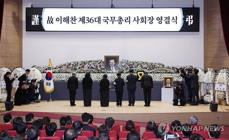 이 전 총리의 관을 실은 운구 차량 트렁크가 닫히자 발인식 참석자들은 일제히 묵념으로 고인의 마지막 길에 애도의 뜻을 표했다.