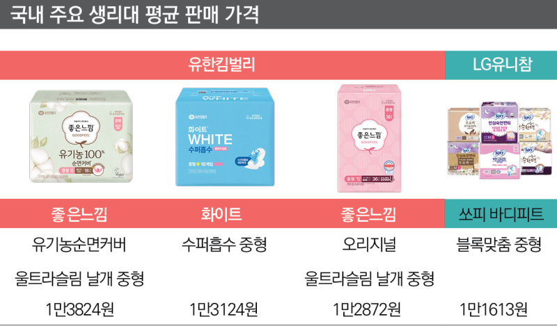 - 국내 생리대 평균 가격, 해외 대비 40% 높아
