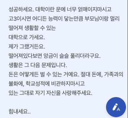 또 "저 고민 글을 쓴 학생이 보고 싶다. 혹시 본인 글이면 꼭 연락 달라. 같이 식사하자"고 덧붙였다.