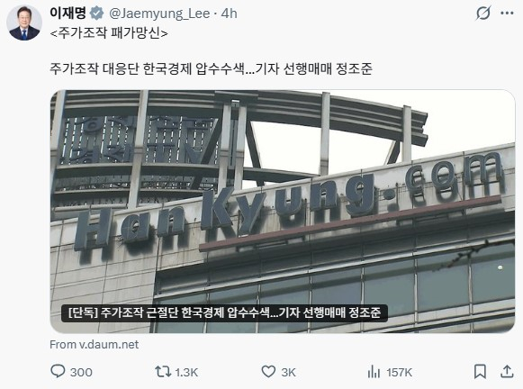 지난달 14일에는 "주가조작 패가망신은 빈말이 아니다. 정상적으로 투자하라"는 글을 엑스에 올렸다.