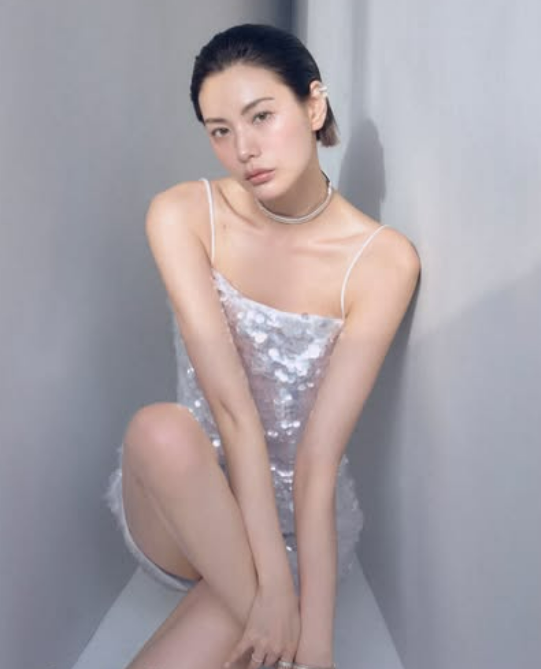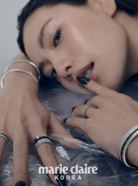 또 다른 컷에서는 반짝이는 시퀸 소재의 미니 드레스를 입고 도회적인 이미지를 연출했다. 젖은 듯한 웨트 헤어 스타일은 그녀의 뚜렷한 이목구비를 더욱 돋보이게 했으며, 앉아 있는 포즈에서도 숨길 수 없는 모델급 비율이 감탄을 자아낸다. 화려한 링과 팔찌를 레이어드한 클로즈업 샷에서는 나나 특유의 감각적인 표현력이 빛을 발했다.