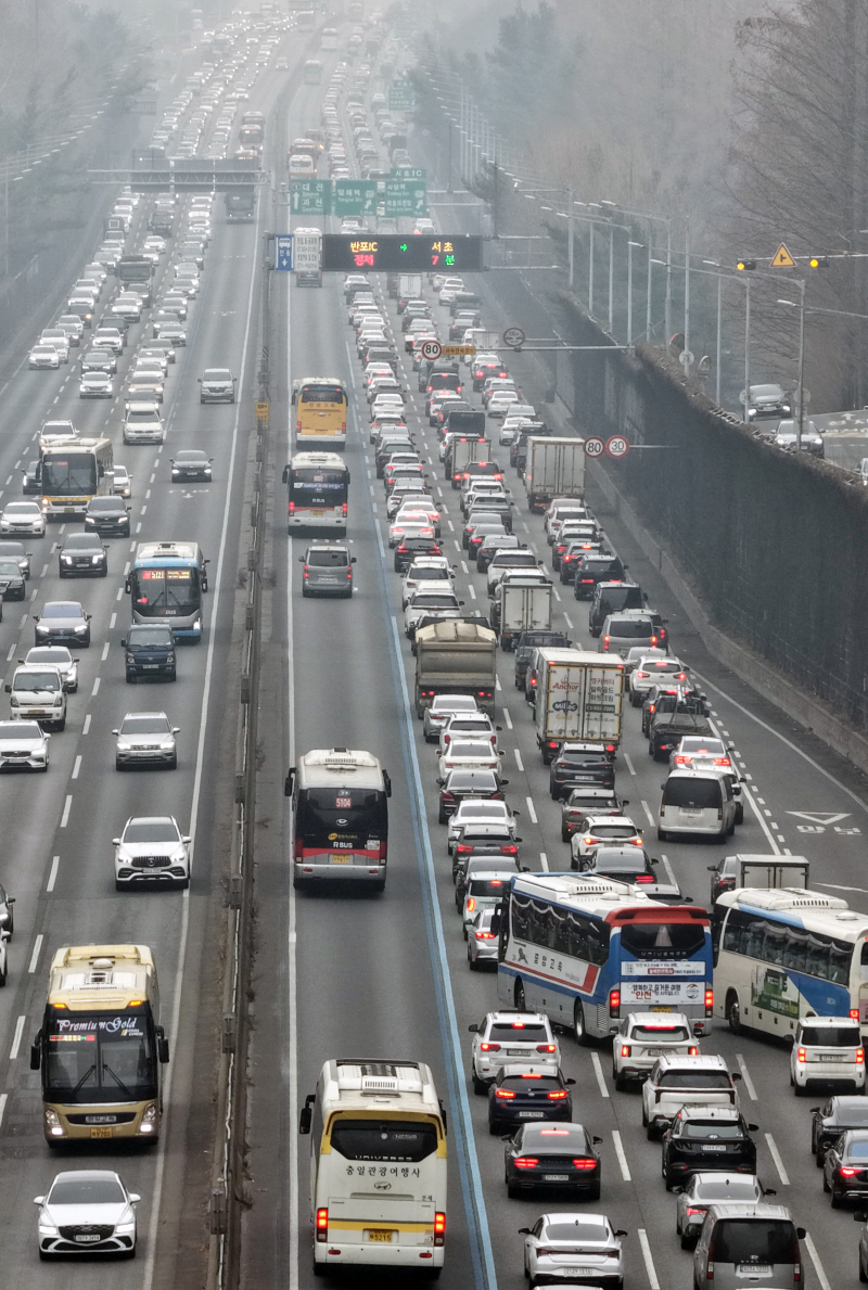 안개·미세먼지 낀 설 귀성길 정체…서울→부산 6시간 50분