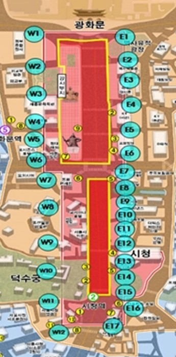 대형 경기장이 광화문에 세워졌다고 가정하고, 외곽선을 통제한 뒤 지정된 통로로만 관람객이 드나들 수 있게 한다는 취지다.