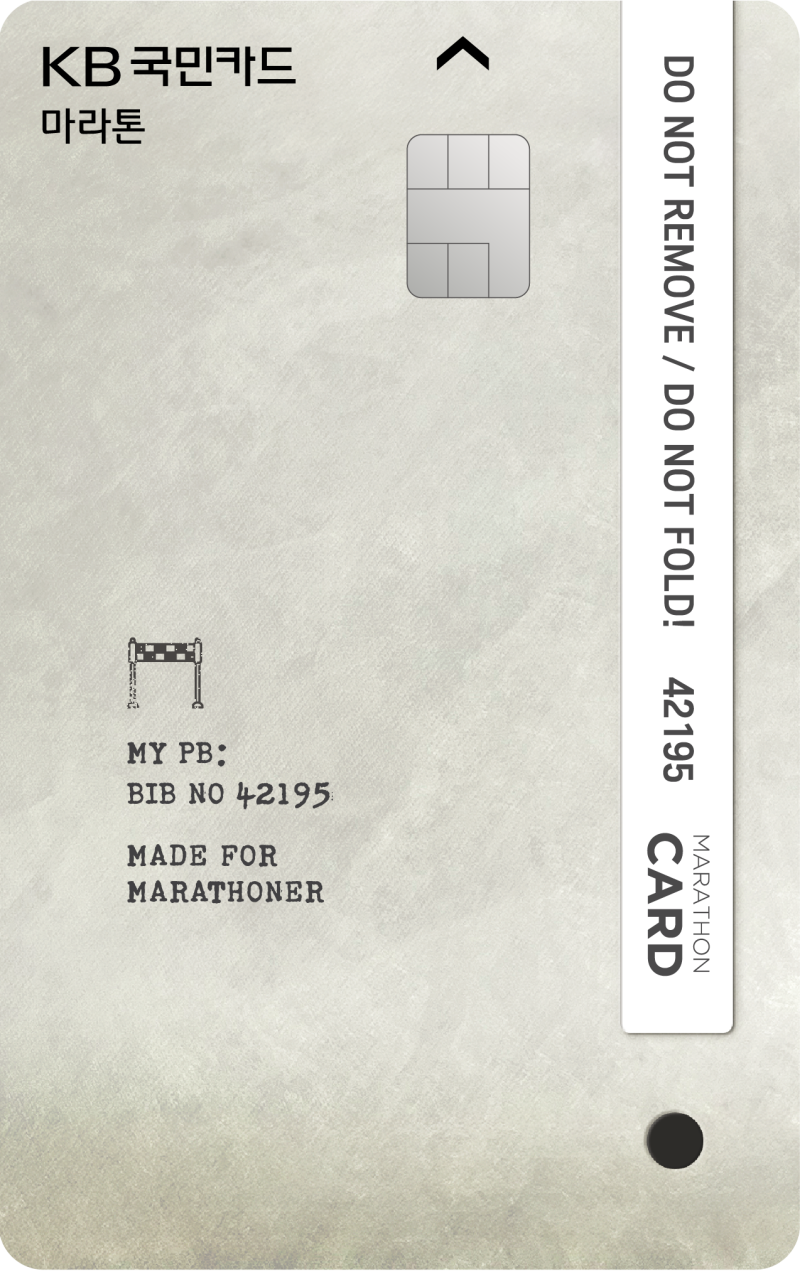 카드 출시를 기념해 다음 달 31일까지 마라톤 대회 선등록 프로모션을 한다. KB 마라톤 카드를 발급받고 프로모션에 참여한 고객을 대상으로 추첨을 통해 마라톤대회 티켓 별도 구매 기회를 제공한다.