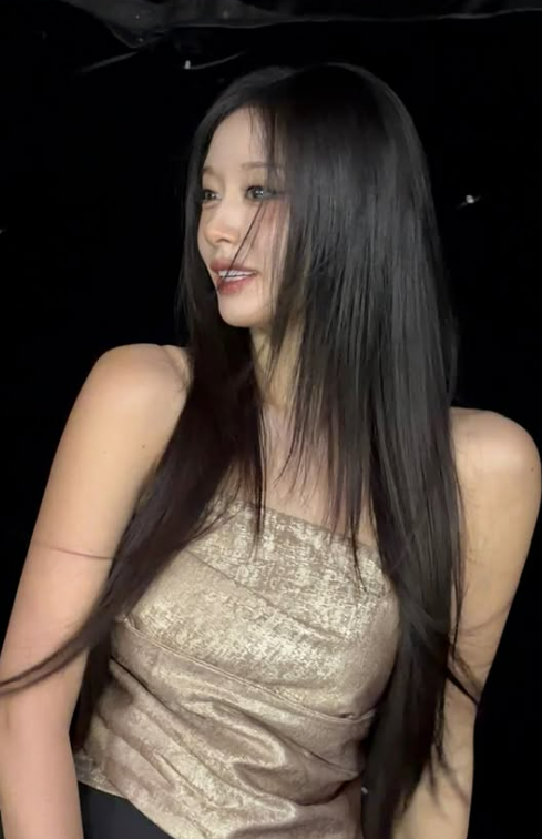 공개된 사진 속 지연은 어두운 배경에서 골드 컬러의 튜브톱 드레스와 블랙 하의를 입고 포즈를 취하고 있다. 특히 날카로운 콧날과 턱선이 강조된 옆모습이 눈길을 끈다.
