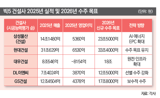 실적 희비 갈린 빅5 건설사, ‘선별 수주’로 2026년 승부수