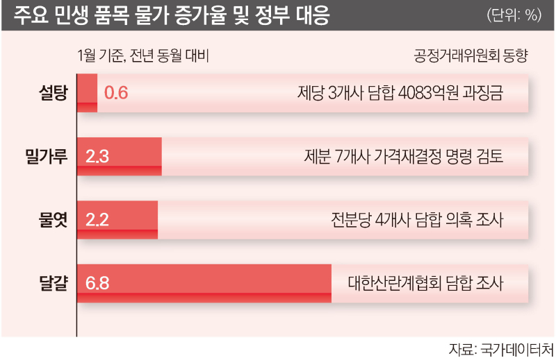 주요 원재료 업계가 정부 기조에 따라 앞다퉈 가격을 낮추는 데는 공정위의 전방위적 압박이 작용한 것으로 풀이된다. 최근 공정위는 생활물가와 직결된 기초식품 원재료 시장 전반에 대한 담합 여부를 집중 점검 중이다.