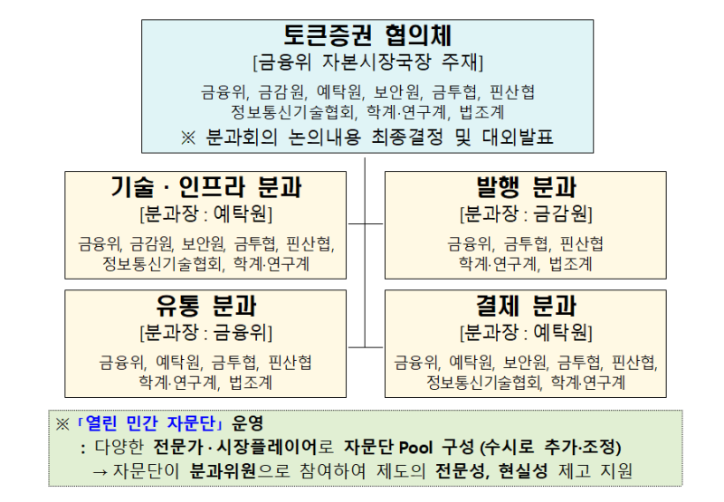 지난 1월 국회 본회의를 통과한 토큰증권 제도화 법은 하위 법규를 정비하고 인프라 구축 등을 거쳐 내년 2월 4일 시행될 예정이다. 토큰증권 협의체는 정부와 유관기관, 민간 전문가들이 참여해 전문성과 현장의 목소리를 공유하고, 제도 설계의 중추적 역할을 수행할 예정이다.