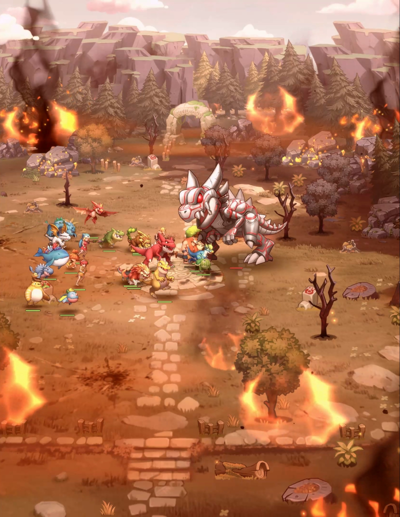 스톤에이지 키우기의 특징은 압도적인 규모의 덱 구성이다. 이용자는 6명의 조련사와 18마리의 펫을 배치해 총 24기에 달하는 군단급 덱을 꾸리고 자신만의 전략을 펼칠 수 있다. 특히 원작의 강력한 보스가 등장하는 대규모 레이드 콘텐츠 ‘강림전’은 수많은 펫들이 동시 출전하는 압도적인 스케일의 전투 경험을 제공한다.