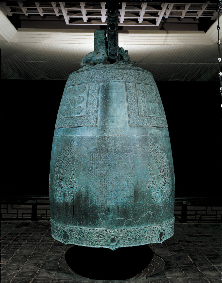 성덕대왕신종은 통일신라를 대표하는 국보이자, 우리나라 범종 역사상 가장 위대한 걸작으로 꼽힌다. 신라 제35대 경덕왕이 아버지 성덕왕의 명복을 빌고자 구리 12만 근을 들여 제작에 착수했으나 뜻을 이루지 못하고 세상을 떠났고, 그 유지를 이어받은 아들 혜공왕이 771년에 마침내 완성했다. 높이 365.8cm에 달하는 종의 표면에는 보상당초무늬와 연꽃 문양띠, 유곽과 당좌가 새겨져 있으며, 그 가운데서도 단연 눈길을 사로잡는 것은 종 한가운데에 새겨진 공양자상이다.