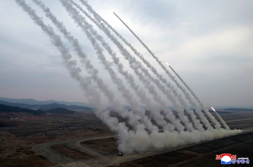 [속보] 김정은 “420km 사정권내 적들에 불안줄 것”...北 600mm 방사포 훈련