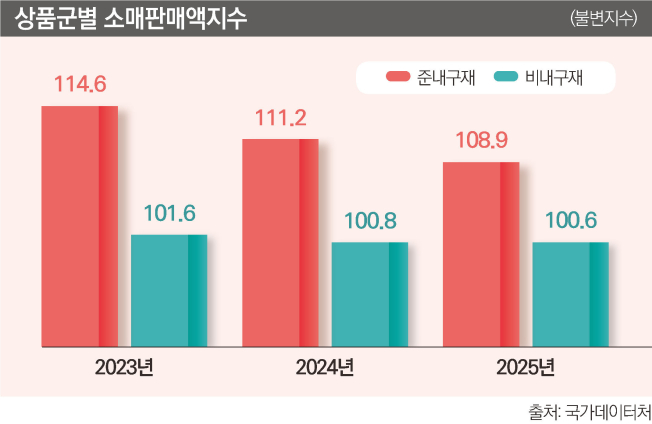 경기 불황 장기화로 소비자들이 지갑을 닫고 있다. 지난해 연간 소매판매액 지수(자동차 제외)는 전년보다 0.7% 감소했다. 지난 2022년부터 4년 연속 마이너스 성장 흐름이다. 이 같은 감소세는 2010년 관련 통계 작성 이래 최장기간 이어지고 있다.